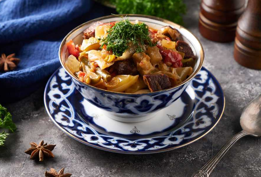 Говядина, перец, сельдерей, редька, картофель, кинза