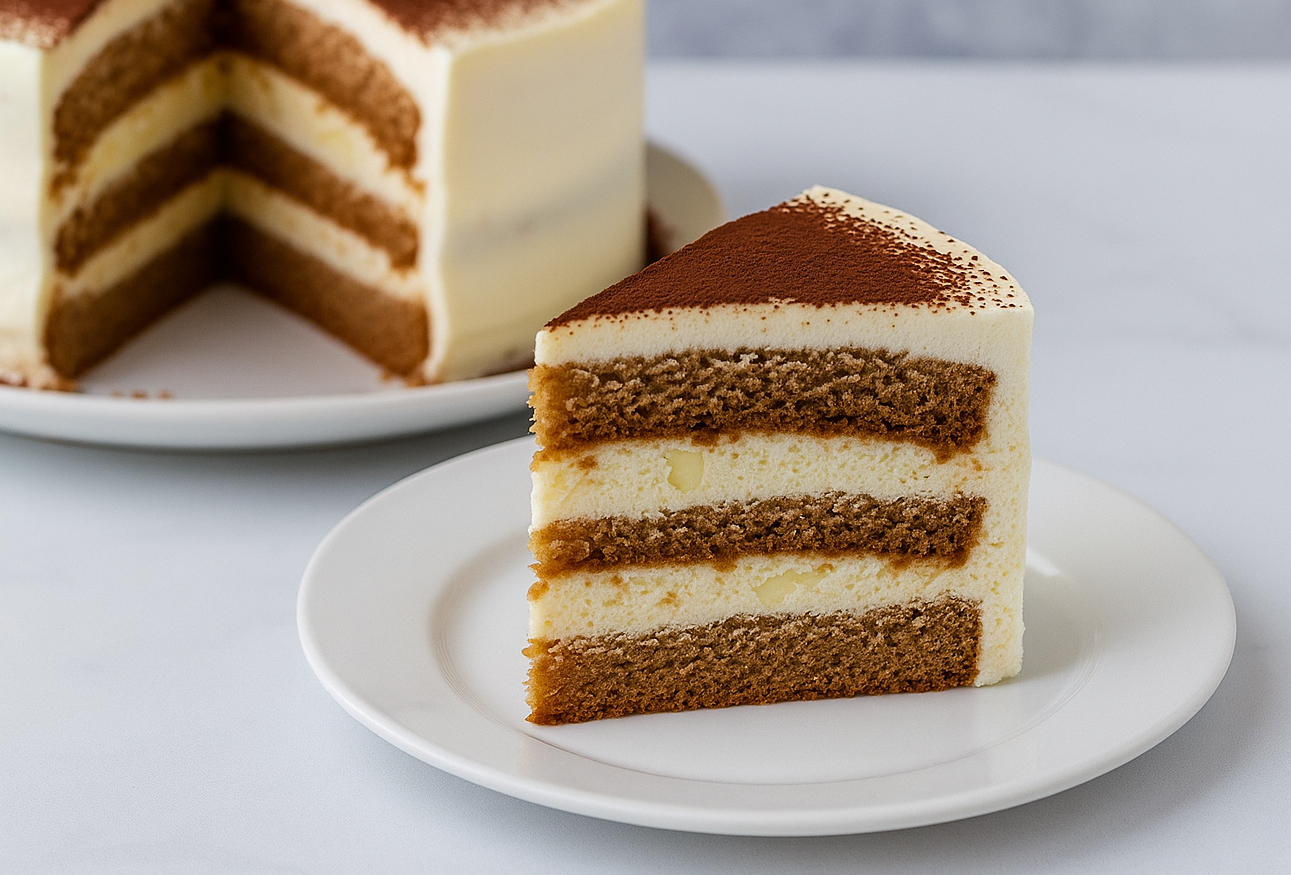 Сливочный бисквит с кофейной пропиткой, начинкой из белого шоколада и крема маскарпоне