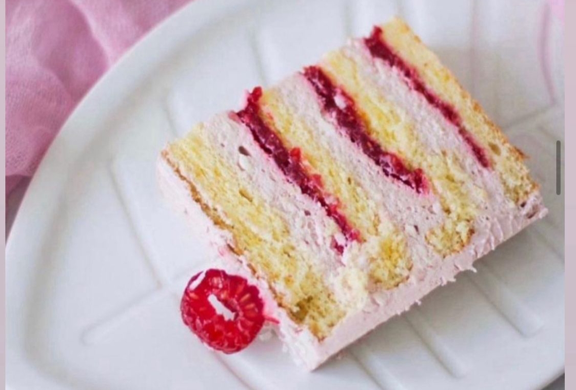 Воздушный бисквит, крем мусс на основе маскарпоне и ягод.